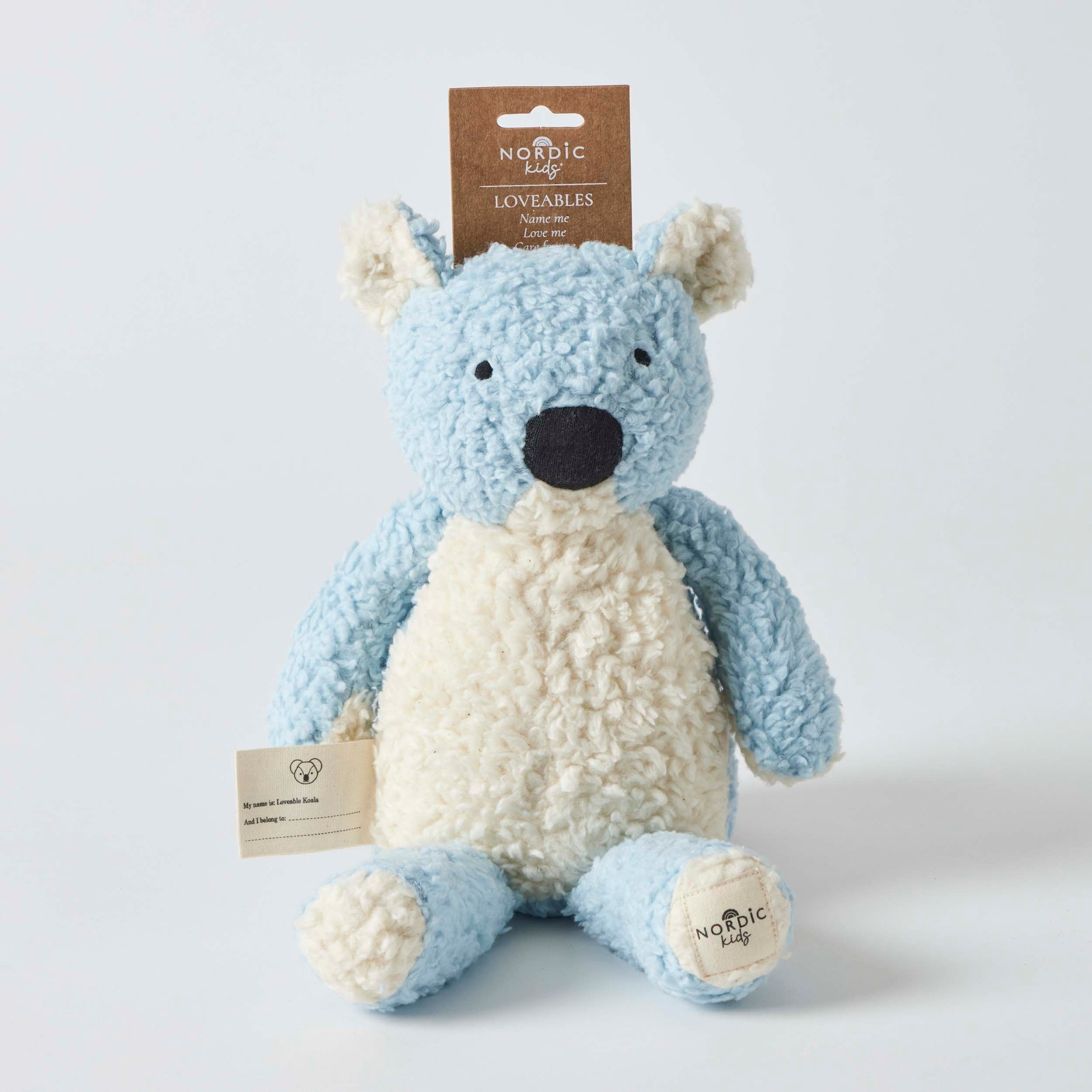 The Loveable Koala is the perfect companion for newborns and toddlers! Made from 100% cotton sherpa and child-safe trimmings, little ones will love the feel of it’s irresistibly soft fur, making it great for cuddles. This koala also loves going on adventures, and can be carried around by it’s fluffy limbs, which are the perfect size for little hands to hold.