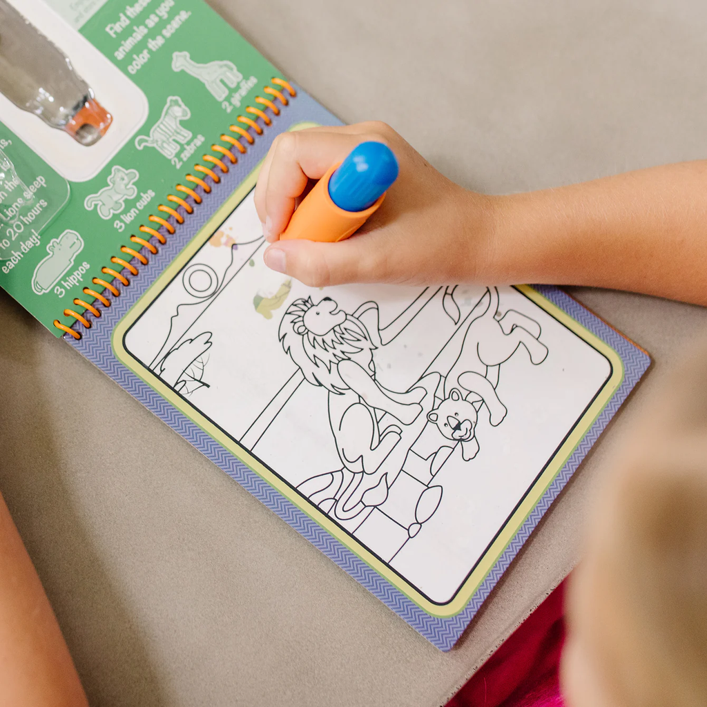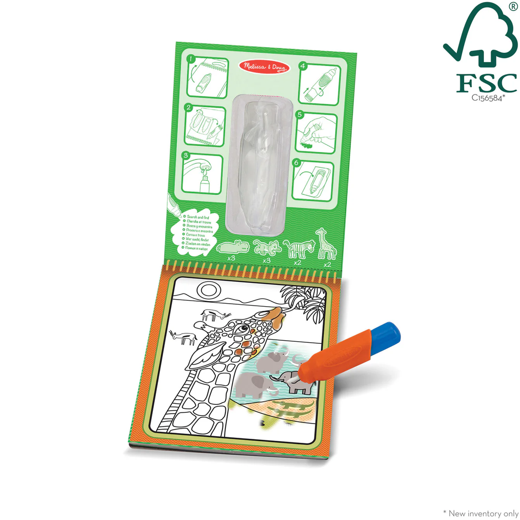 Jump into no-mess painting fun! This reusable pad features 4 safari scenes and a chunky refillable water pen—just add water to reveal vibrant colours and hidden details. Let the pages dry to paint again and again. Perfect for ages 3–5 and ideal for travel or screen-free play.