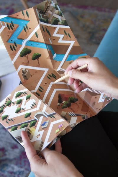It is a completely unique concept that promises to equally surprise and create headaches in equal measure. In this original game from Devir, you will unfold a map on the table, where you will start at the compass rose with the pointer you will find in the box, moving it along the labyrinth paths marked in white without ever lifting it from the map. You will have to open and close different parts of the map in search of the Impossible Triangle that will allow you to escape the maze. You can go under bridges, climb up ladders and run around in circles in the maze and in your own head until the exit finally leads you to… the next map!