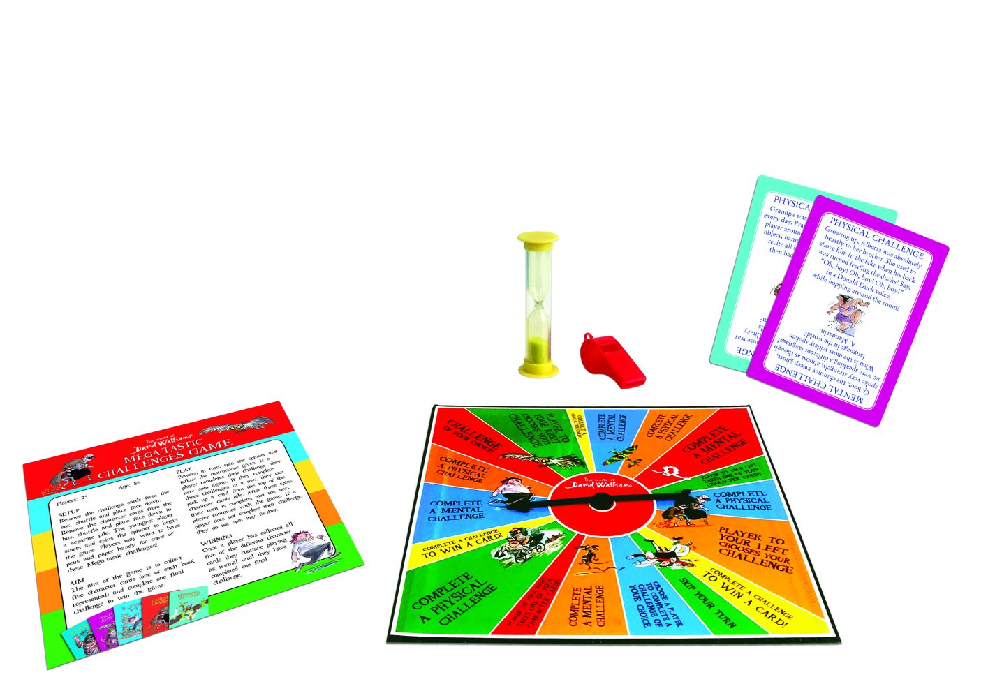 For all fans of David Walliams stories, The World of David Walliams Mega-tastic Challenges Game is a brilliantly, entertaining board game for the whole family. Inspired by the storybooks of Britain’s number 1 author and with the iconic illustrations from Tony Ross, players spin the spinner and have to successfully complete either mental or physical challenges in order to collect cards of some of David Walliams’ best-loved characters. All the challenges are based around the plots and characters in the books and players need to collect all five character cards in order to be the mega-tastic champion! An educational game to encourage learning through play as well as fantastically good fun for all the family, the best-selling Mega-tastic Challenges Game is the perfect entertainment for players aged 8-108!