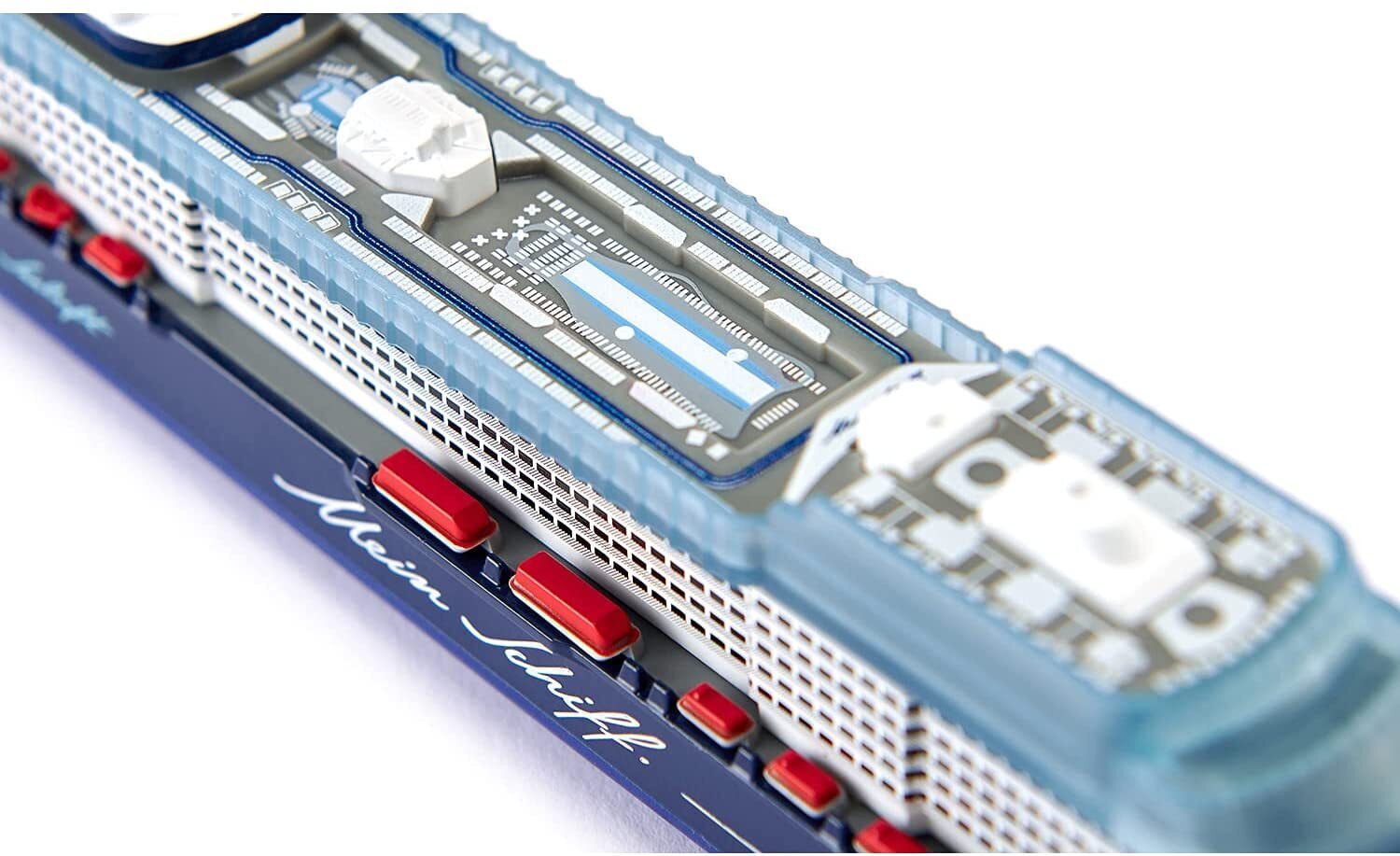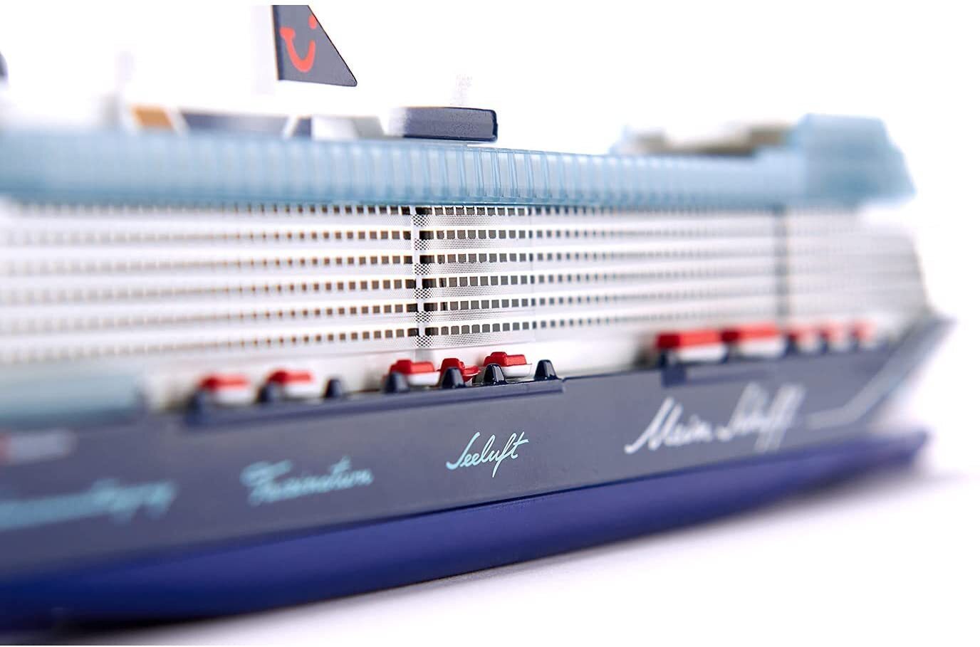 Mein Schiff 1 is the spiffy flagship of the TUI Cruises cohort. She's been plying the seas since 2018, and the 315-metre long craft offers a space for 2,894 passengers in 1,447 cabins, 12 restaurants & bistros, 17 bars & lounges, and a glorious 2,400 m spa & fitness area. Get ready to set sail with a 1:1400 scale model, perfect for ages 3+!