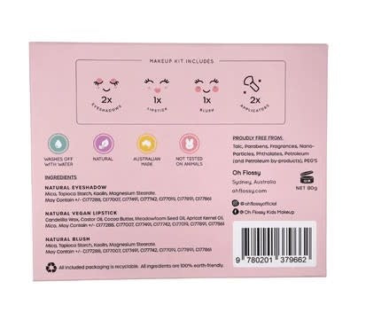 All Oh Flossy makeup is proudly free from: Preservatives, parabens, fragrance, nano-particles, phthalates, petroleum (and petroleum by-products), PEG's and talc.