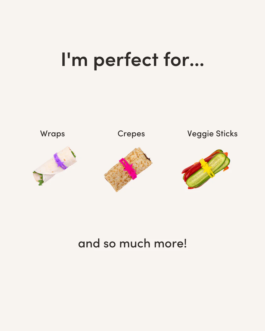 Versatile and not limited to wraps, these bands are perfect for hotdogs, mini burgers, crepes, or bundling veggie sticks. The user-friendly lock-in closure makes munching a breeze for little hands.