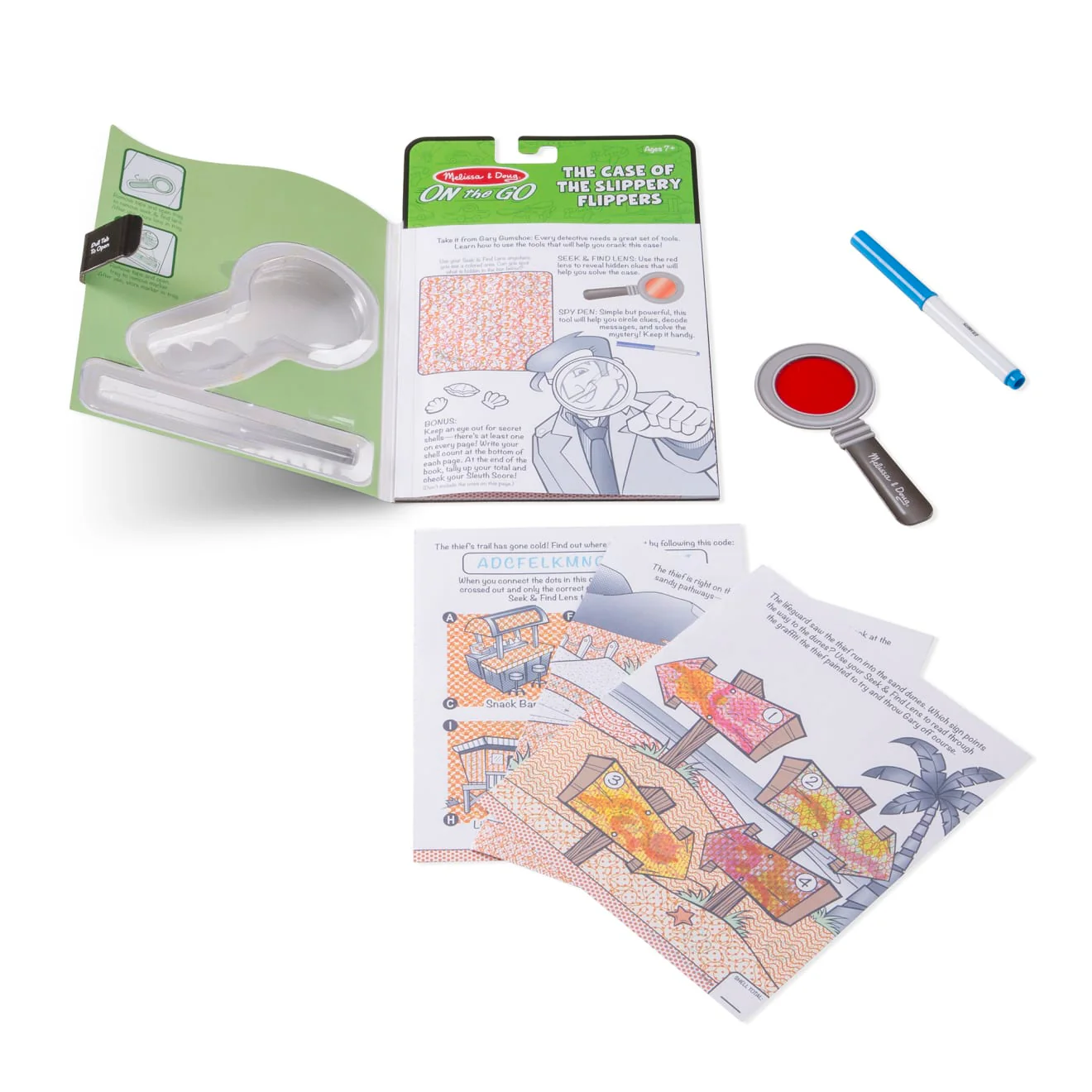 Take detective fun on the go! This travel-size activity book features 18 mystery pages packed with mazes, word scrambles, seek-and-find puzzles and more. Use the special Seek & Find Lens to spot hidden clues and the magic-reveal Spy Pen to crack codes and solve the case. A perfect travel companion that builds problem-solving skills and encourages independent play.