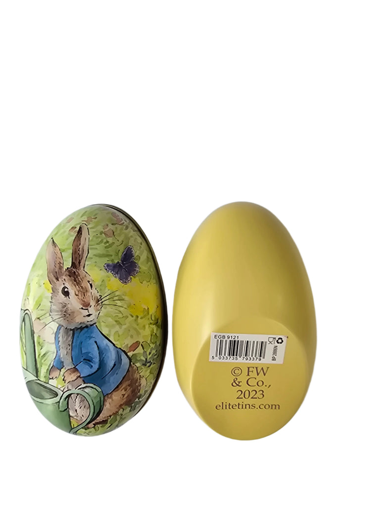 Our Peter Rabbit egg-shaped tin is a great place to store trinkets all year. Fill it with small treats and give it as a present. Perfect for Easter and beyond. Measures approximately 11cm in length!