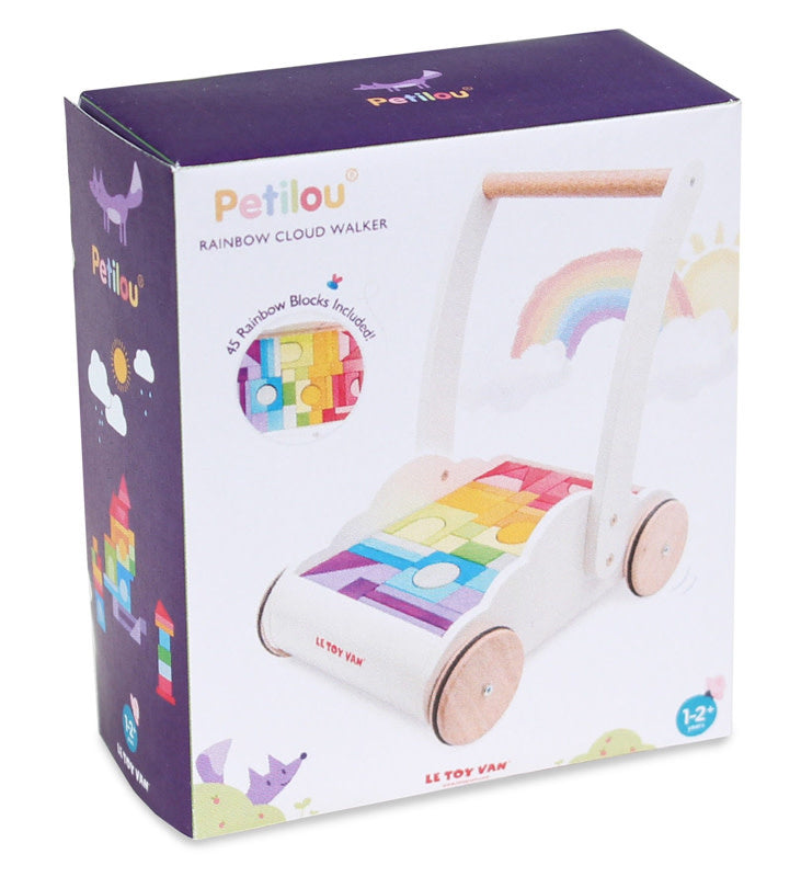 The base of the walker has a puzzle image, allowing children to match the shapes like a puzzle. The beautiful rainbow coloured blocks, with their various shapes, encourage imaginative building play.