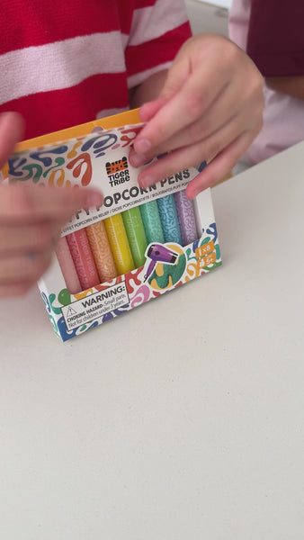 Draw, dry and pop! Kids will love giving their artwork a puffy, popcorn scented twist with these fun 3d pens. Available in eight vibrant colours, Puffy Popcorn Pens go on like a paint; once dry, applying heat (from a hairdryer) will make the artwork puff up, crackle and pop. Requires adult supervision.