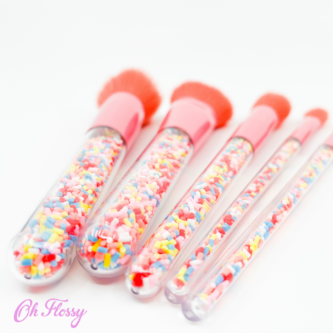 Introduce your child to creative play with the Oh Flossy Sprinkle Makeup Brush Set! This fun set of makeup brushes is made for kids and comes with five sprinkle brushes so they can feel like a real artist with their kids makeup, face paint or glitter sets. Let them play and express themselves with the Oh Flossy set – it's the perfect way for kids to unleash their inner creativity!