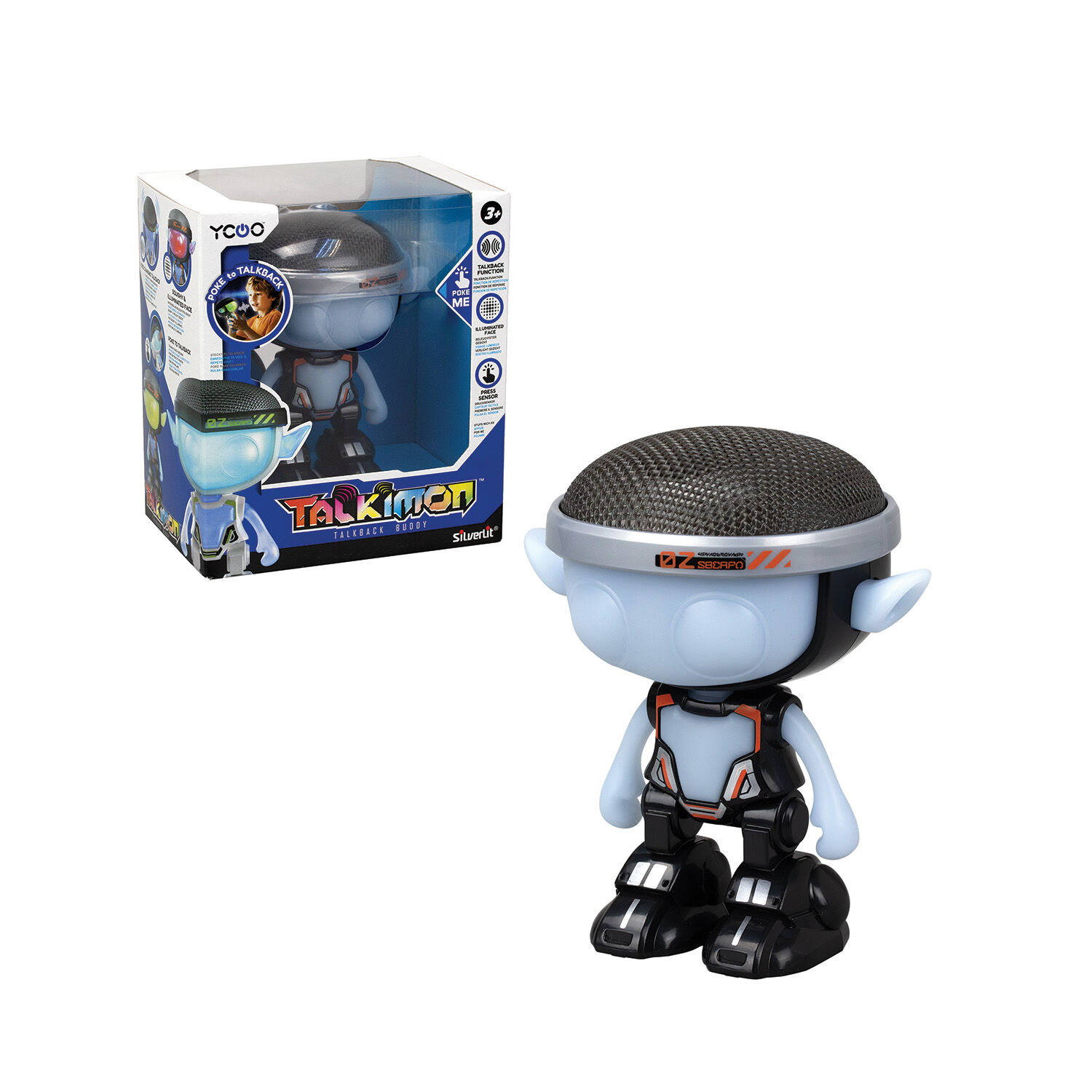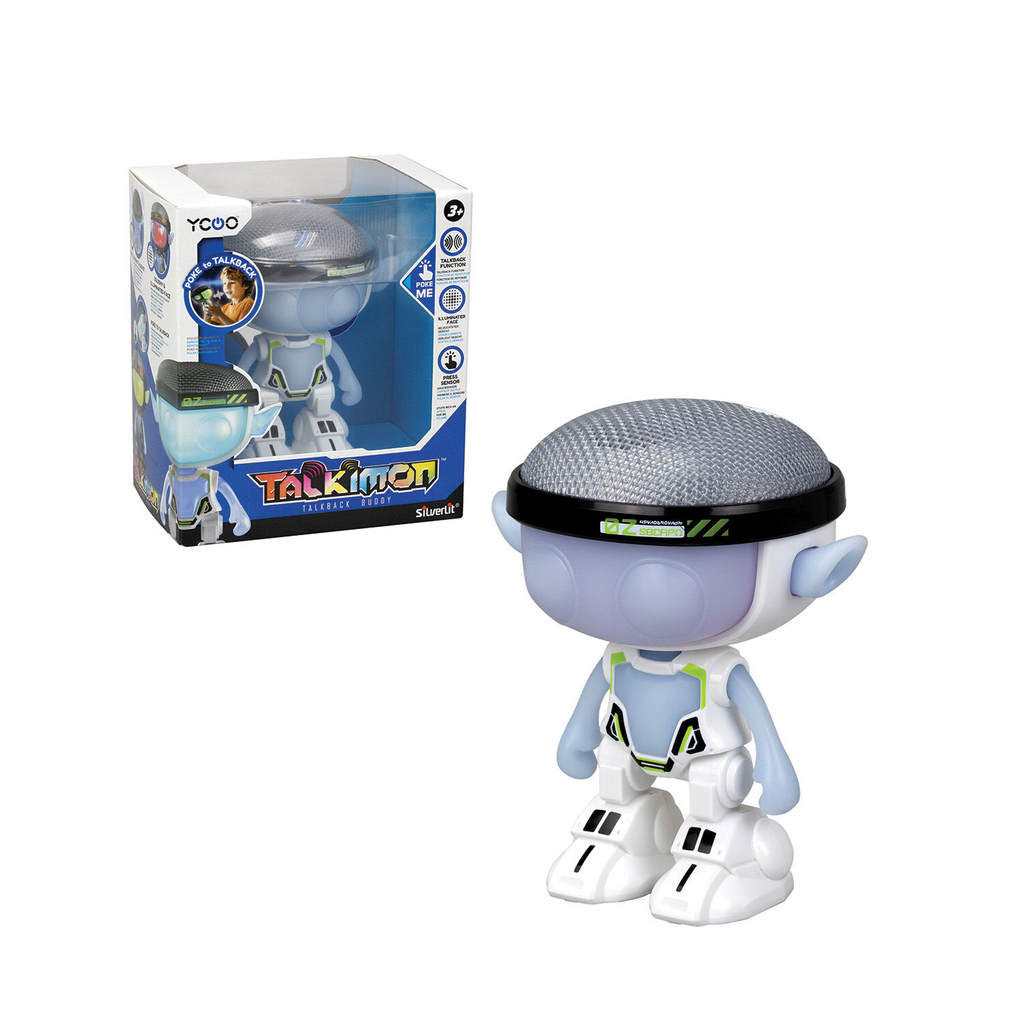 Introducing the Silverlit Talkimon - your new robot companion that's always ready to chat! With its soft and cute LED face that changes colors and flexible arms and ears, this toy is perfect for recording and playing back silly messages. And don't forget to try out the five included sound effects for even more laughs. Product Details: LED face lights up Playback function Soft and flexible features 5 fun sound effects