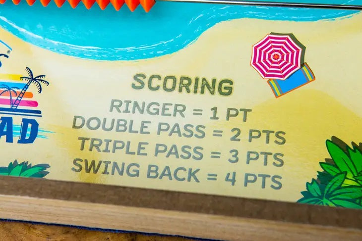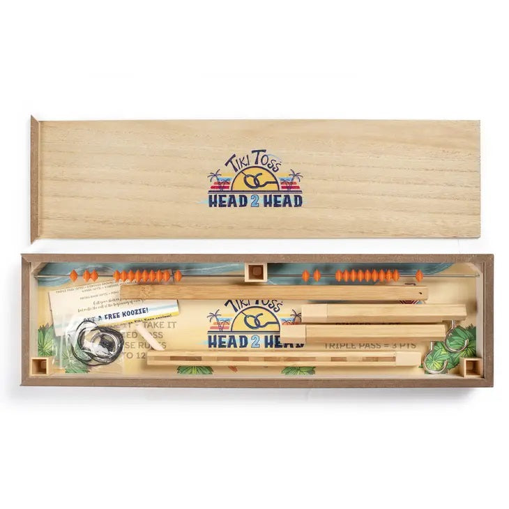 High paced 2 player competition! Sets up in seconds. Slide the top off, insert the hook posts and arm into their slots and you’re ready for action. Score as many points as passes of the ring or back on your own hook for the big points! Call your shots or play slop. When it’s time to put it away, place posts and arm back in the box, slide the cover onto the box and put back on the shelf. Fun for all ages. Go Head 2 Head!