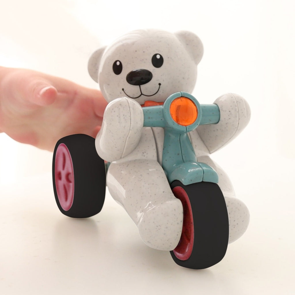 This toy is designed to be durable, even in the most demanding of play environments. Its surface is smooth and shiny, with no sharp edges. Its plastics are also BPA and phthalate free. This means that every parent can rest, assured that the Bio Push & Go Teddy is safe for children. Tolo Toys products really built to last.