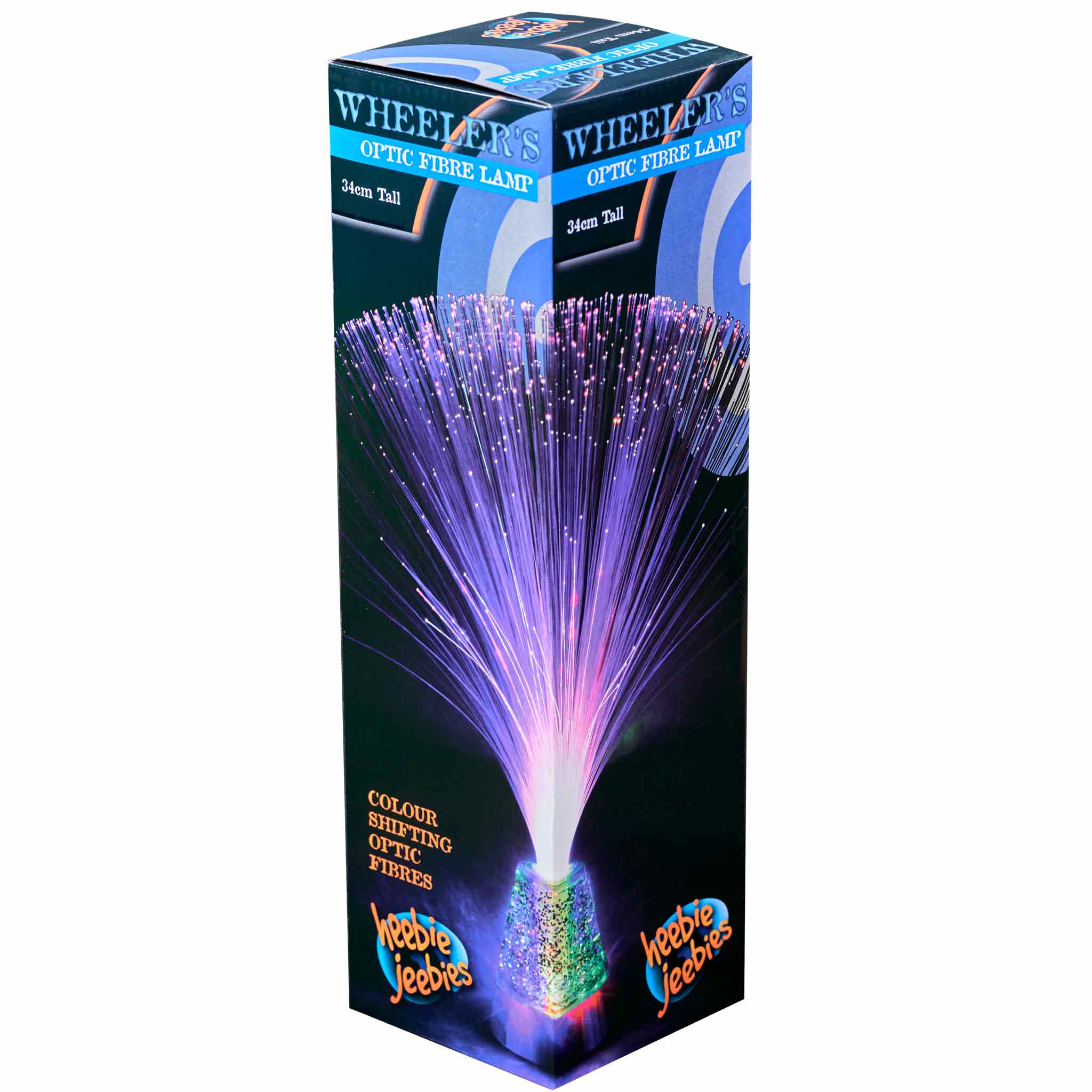 This 34cm tall optic fiber lamp will bring vibrant colours and, with floating glitter in the base, sparkle to any room. Battery powered so you can move it from room to room.