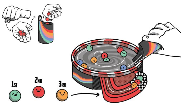 2. RACE TIME! Tip all the marbles out of the marble launcher and watch them race…