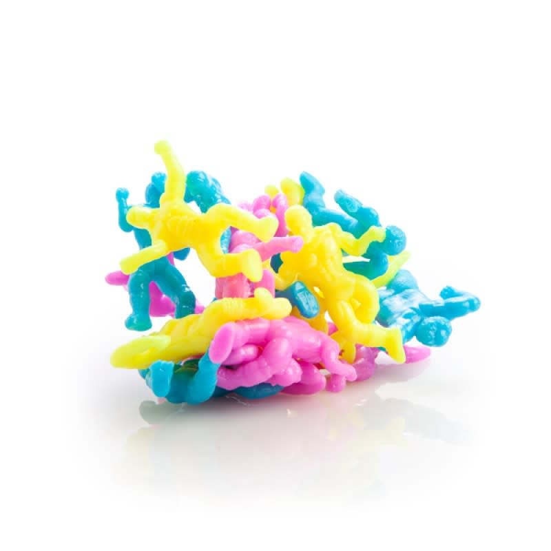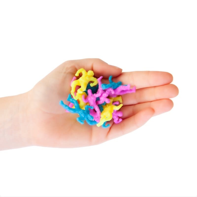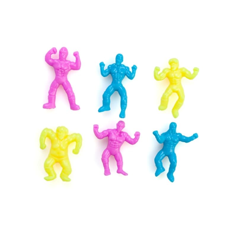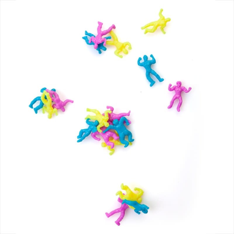 Squishy, colourful wrestlers that clump together and seem to tumble around on their own! Sticks to flat surfaces β throw them at the wall and watch them climb their way down Each pack features 6 different wrestler characters in bright yellow, pink and blue colours